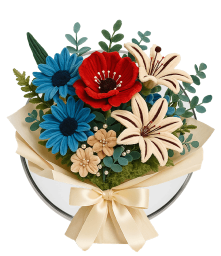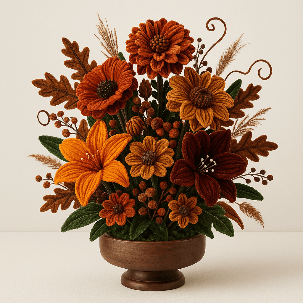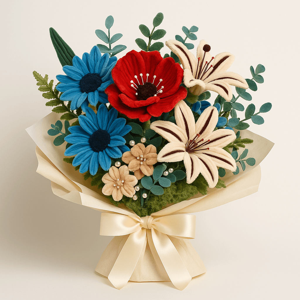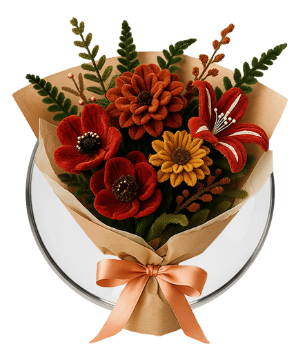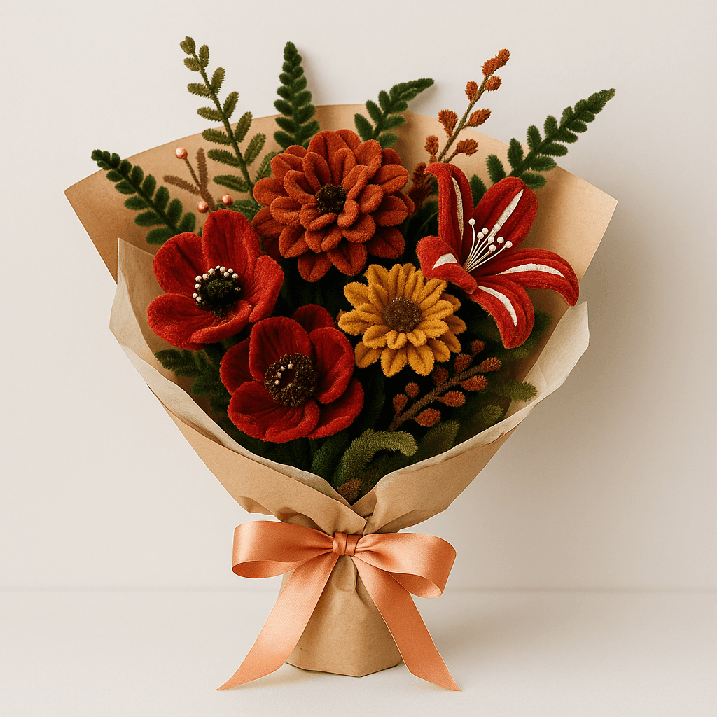 Modelăm manual fiecare petală din sârmă plușată premium, montăm tulpini și frunze, ascundem prinderile. Lucrăm în straturi discrete pentru buchete durabile, coerente, armonioase.